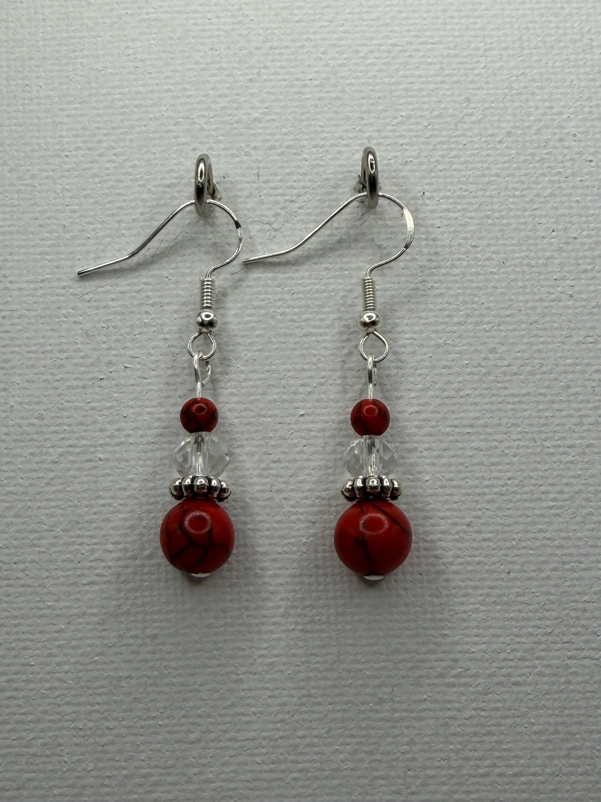 Bold red glass beads paired with clear faceted crystal accents create a timeless Valentine look with elegant shine. These handcrafted earrings balance color and sparkle without feeling heavy, making them perfect for both everyday wear and special occasions. Finished with sterling silver fish hook ear wires and silver-tone findings for lightweight comfort.