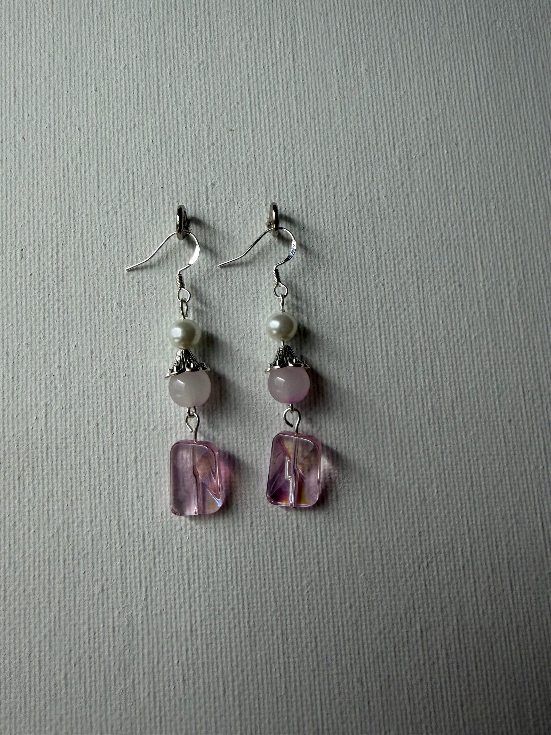 These elegant Valentine drop earrings feature a layered combination of blush pink glass beads and faceted clear crystal glass, finished with decorative silver-tone spacers for subtle sparkle. Designed with sterling silver fish hook ear wires, this lightweight pair offers gentle movement and a soft glow that works beautifully for Valentine’s Day and everyday wear. Romantic, feminine, and easy to style, these earrings are perfect for those who love refined details.